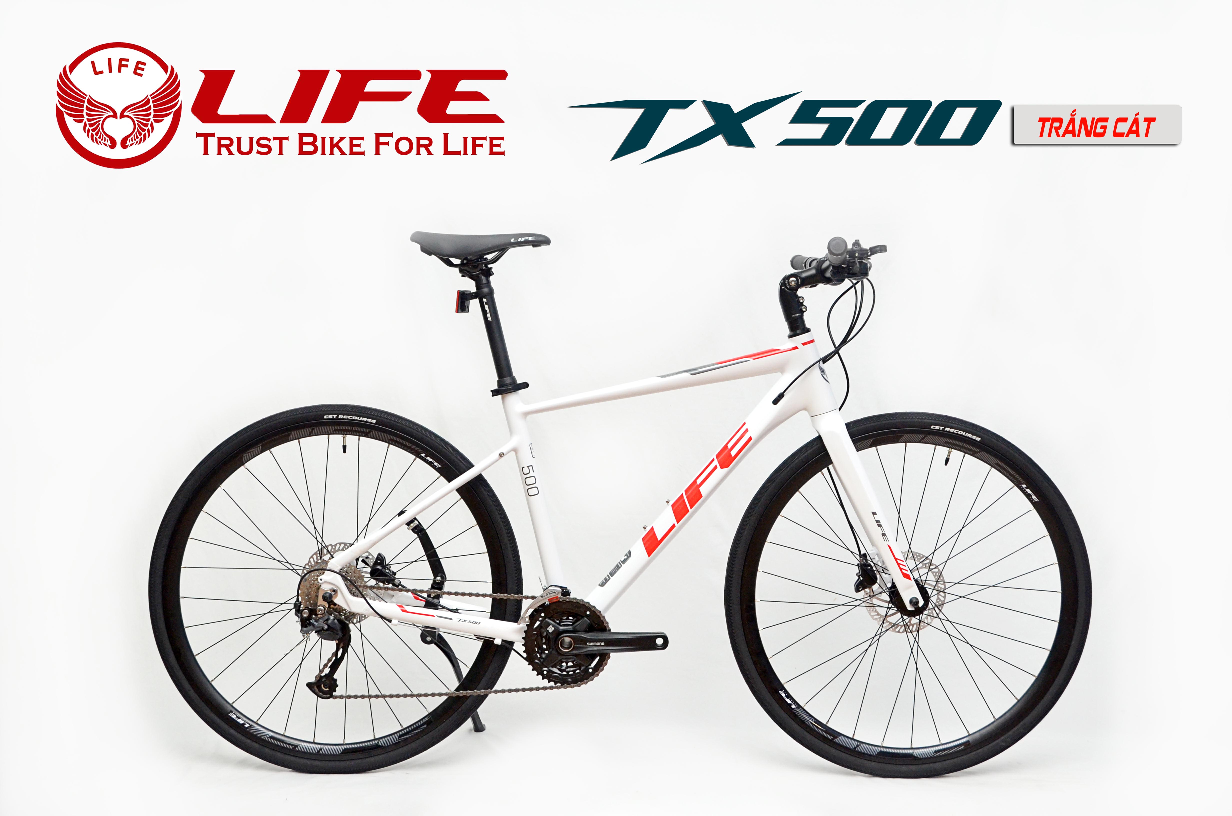 Xe đạp touring LIFE TX500 được hãng xe đạp LIFE đưa tới cho người sử dụng sản phẩm những trải nghiệm tuyệt vời nhất, có những chuyến đi hoàn hảo nhất. TX500 là một chiếc touring ở tầm cao với cấu hình 27 tốc độ, phanh dầu, trục rỗng, líp thả tạo lên một lựa chọn nổi bật cho thị trường, với thuộc tính nổi trội của LIFE là sự thu hút về hình thức và rất thời trang. TX500 mang lại trải nghiệm cho một mẫu xe cao cấp, đẹp - thực sự tạo lên một lựa chọn khó cưỡng cho phân khúc xe touring tầm trung cao.