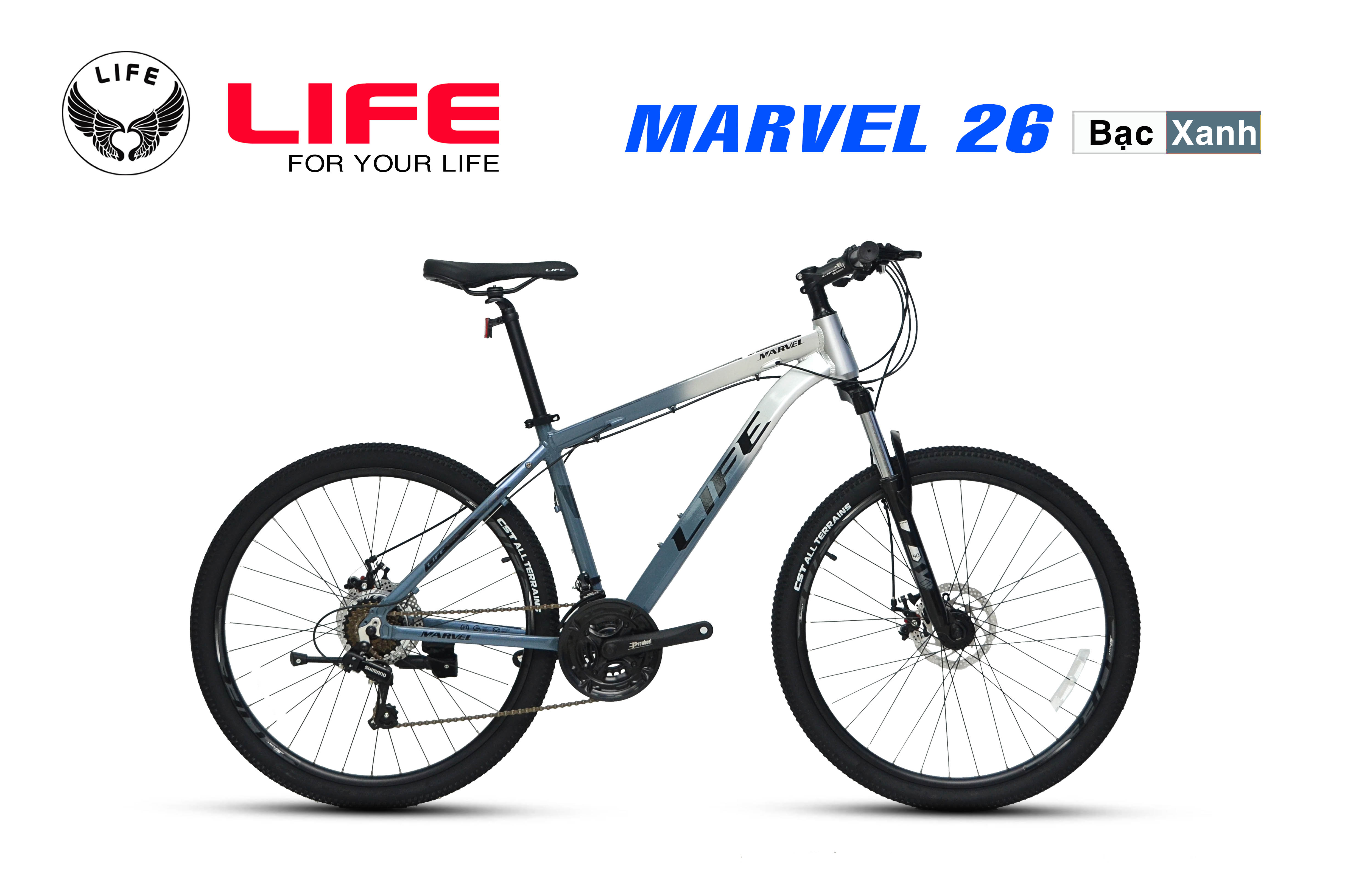 e đạp thể thao LIFE MARVEL 26 được hãng xe đạp LIFE cho ra mắt thị trường từ năm 2021 đến nay với chất lượng vượt trội cấu hình tầm trung xe đẹp bền chạy ổn định. Khung Nhôm không gỉ nhẹ, sơn tĩnh điện tem nước đẹp bắt mắt. Xe được trang bị bộ truyền động SHIMANO thương hiệu Nhật Bản 21 tốc độ.